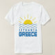 Desfrute deste verão com esta T-shirt masculina branca com ondas de sol e mar da Grécia, Sithonia. Este design azul e amarelo apresenta ondas de sol e água com Sithonia em fonte estilo grego com uma grande palavra azul Grécia.