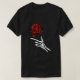Elegant and captivating design portraying a delicate red rose gracefully held by a mesmerizing skeleton hand.