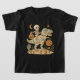 Celebre o Dia das Bruxas da forma mais caprichosa com esta divertida e assustadora ilustração! Um esqueleto alegre de desenho animado vestindo uma coroa de flores monta um dinossauro T-Rex através de uma paisagem desértica sob uma lua crescente e um sol brilhante. O esqueleto agarra um cheio de doce de balde de abóbora, e uma faixa "BOO!!" lúgubre acima. Cercado por cactos, flores do deserto, e estrelas, esta cena colorida do Halloween se mistura perfeitamente assustadora e fofa com uma torção boho. Esta design é perfeita para roupa, canecas, sacos de tote, convites para festas, adesivos e muito mais. Seu charme lúdico e deserto único fazem dele um destaque para crianças e adultos que amam arte de férias fofa e peculiar!