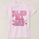 Step into your power with this playful “Slay All Day” T-shirt! Designed in a soft light pink shade, it features bold bubble lettering accented with cheerful flowers and smiley faces. The fun, girly vibe makes it perfect for casual outings, lounging, or pairing with your favorite jeans for a trendy streetwear look.