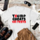 "Trump Cheats On Tests", A camiseta é uma declaração. Caramba, gravada no peito, estão as palavras "Trump Cheats On Tests". É uma simples design, a frase tirando palco central, provavelmente em uma fonte forte para o máximo impacto. A camisa serve como um início de conversa, uma forma de comentário político.