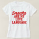 Camisa Engraçada. Snacks são a minha língua de amor, engraçado dizendo: "snacks sarcásticos na comida"