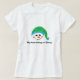 Um boneco de neve vestindo um grande sorriso com um coração sentiu que dizia.