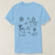 Natal azul e branco desenhado à mão, flocos de neve, boneco de neve, t-shirt de rabiscos. Boêmia, cana doce, assaltante, design estética de inverno. Porodle, simples, camiseta mínima.