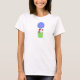 Um design de feriado divertido com um bonitinho bonitinho acenando de um balão de ar quente. Um balão azul com estrelas brancas e uma cesta verde.
