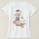 Um boneco de neve esquiando com esquis, polos e um chapéu. Esta design parece muito eficaz nesta Camiseta das Mulheres