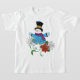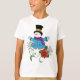 Homem de neve com um chapéu de cima e cachecol com poinsettia e flocos de neve.