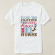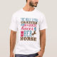 Um presente engraçado para uma vaqueira de corrida de barril que ama seu cavalo. A camisa diz: a única coisa mais louca que uma corrida de barris é o cavalo dela.