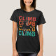 Sobe, Camisa de Aventura Brave Climber de Montanha com uma silhueta de um alpinista bem no meio. Uma imagem muito legal para vestir quando você estiver fora! Os conjuntos escuros de fundo das 4 diferentes cores das palavras sobem e acentuam o contorno branco do alpinista.