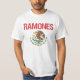 Um t-shirt que caracteriza uma águia mexicana afligida que caracteriza o sobrenome Ramones.