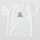A fun t-shirt with a soccer theme front and back. The design has soccer boots and a ball on a soft blue background on the front, with a further soccer ball on the back. You can customize the caption on the front of the t-shirt which reads "SOCCER STAR" in blue text. Add your preferred name or other text on the back too. Great birthday gift for boys or girls.