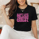 This stylish Christian t-shirt features bold, retro-inspired wavy typography with the uplifting message “Soft Life Through Christ.” The vibrant pink lettering stands out beautifully against a dark background, creating a trendy yet faith-centered design that feels modern, confident, and joyful.