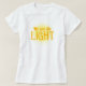 Logotipo gráfico em amarelo ensolarado e laranja. Citação de positividade nós somos a luz sobre um sol gráfico radiante. Design inspirado no fato de sermos todos seres leves e de termos de iluminar a nossa luz por um mundo mais positivo e feliz para todos. © Art e design por Sarah Trett.