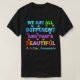 Citação inspiradora de "Somos Todos DIFERENTES E Isso é LINDO" com quebra-cabeça autistas únicos, e borboletas coloridas voando em segundo plano para apoiar e defender a consciência do autismo.