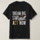 Abrace seus sonhos com nossa camiseta *"Dream Big, Start Small, Act Now"*! Este design inspirador serve como um lembrete diário para tomar medidas em relação aos seus objetivos, um passo de cada vez. Disponível em várias cores e estilos, é perfeito para quem está pronto para fazer a diferença. Pegue a sua e comece sua jornada hoje!