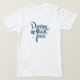 Uma t-shirt vibrante e inspiradora, com a frase "Sonhe sem medo" numa letra audaciosa, em estilo grafite, com gotas e placas coloridas. Essa design encoraja os indivíduos a perseguir seus sonhos com paixão e sem hesitação.