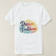 Uma interpretação moderna e artística da palavra "liberdade", rodeada por elementos abstrato que representam a imaginação e o crescimento. Vista para se lembrar que seus sonhos são tão grandes quanto sua liberdade permite.