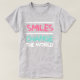 "Sorria, Mude o Mundo" é exibido elegantemente na tipografia moderna e fluente, cercada simbolizando o efeito ondulado de um sorriso de solteiro. Contra um pano de fundo minimalista, mas aterrador, esta camisa encoraja pequenos atos de gentileza que podem ter um grande impacto. Perfeito para aqueles que acreditam no poder da positividade e espalham boas vibrações para onde quer que vão.