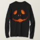 Um sorriso esqueletal alaranjado da abóbora iluminou-se de dentro como de um jackolantern, perfeito para o Dia das Bruxas.