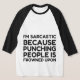 Camiseta Básica, Mangas Raglan 3/4, Branco/Preto, Adulto M