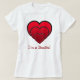 Sou um Bestie! Camiseta Galentine. Corações vermelhos numa camisa branca.