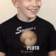 Hetero de uma loja em Plutão, este "souvenir" apresenta uma imagem icônica do voo de 2015 da New Horizon com a tipografia que lembra a rodovia do século 20 de médio kitsch.