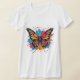 a butterfly behind it there are splashes of paint of blue pink and yellow.