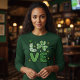 The design is topped with a whimsical leprechaun hat and a four-leaf clover, accented by golden coins and sparkles. Set against a deep forest green fabric, this comfortable long-sleeve tee is perfect for St. Paddy’s Day parades, pub crawls, or cozy holiday gatherings. Show your love for all things Irish with a design that is as lucky as it is fashionable!