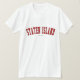 Verifique para fora este t-shirt de Staten Island! É você de Staten Island, New York? Você tem um amigo ou um membro da família que amem Staten Island, New York? Em caso afirmativo, este t-shirt da "bandeira" é exatamente o presente que você está procurando! As características de design "Staten Island" na rotulação vermelha arqueada na pia batismal clássica da faculdade.