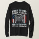 For grown-ups who never outgrew their love for trucks, this shirt features a bold semi-truck and metallic-style text: “Still Plays with Trucks.” Set against a stylized American flag, it’s a playful tribute to lifelong passion and road-bound nostalgia