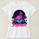 Summer Flamingo in Neon - Ein tolles Design in leuchtenden Farben machen Lust auf den Sommer. Ein Flamingo zwischen Palmen, der vor einem schönen Sommerabend steht.