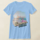 Prepare-se no verão, aqui vamos nós! Camisa de verão divertida com tipografia retrô que diz, "Summer Vibes" com uma foto do oceano e uma floaty flamingo.