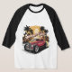 Camiseta Básica, Mangas Raglan 3/4, Branco/Preto, Adulto M