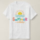 O verão vibe com a camiseta branca dos design do sol e do mar que é perfeita para ajudá-lo a entrar naquele belo modo de férias. Este design colorido apresenta letras coloridas vibrantes no estilo caligráfico.