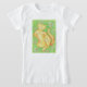 Um gato de mesa amarelo feliz rolando sobre a grama no sol. Camiseta com um design personalizável amarelo, laranja, verde, branco e azul para você personalizar com seu próprio texto, fotos e ideias. Um lápis original colorido de Jess Perry.