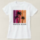 Marsa Alam, de uso feminino, vintage sunset T-Shirt design para apreciar o verão no estilo. Esta design de camiseta apresenta a palavra 'Marsa Alam' em faixas coloridas de sunset com palmeiras para dar as boas vindas ao verão.