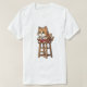 A cute cartoon cat with wide, expressive eyes sits on a tall wooden chair, captured in a moment of pure surprise. The character wears bright red shorts and a small whistle hanging from its neck, adding a playful lifeguard vibe. Soft fur textures, warm brown and cream tones, and clean bold outlines give the illustration a polished, friendly look. The pose, tiny paws, and curious facial expression create a charming and humorous scene that feels lively and full of personality against the dark background.