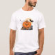 Ilustrações malucas de elementos e personagens populares do Dia das Bruxas. Pumpkin com olhos humanos, gato preto, crânio, chapéu de bruxa, e zombie saindo da cova.