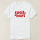 Teto gráfico de dias de os namorados cardíacos amorosos para homens com tipografia moderna de escrita minúscula com texto vermelho e camisa branca de "coração doce"