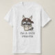 Esta camiseta contem um personagem de desenho animado bonito. Taucoo é um guaxinim que joga como um pirata, com um par de orelhas de coelho longas, vestindo uma obscuridade - a capa vermelha que tem um crânio e um cruzamento das facas e das espadas nela. Sua pele é cinzenta. Há diversos anéis pretos em sua cauda longa e grande. É de sorriso e pensando algo, os dentes brancos estão brilhando. Especialmente, tem uma máscara preta legal!