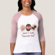 Camiseta feminina mangas raglan 3/4 da Bella+Canvas, Branco/Cor-de-rosa, Adulto P