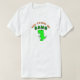 Um fofo t-rex de desenho mostrando seu poder. Design original com texto e desenho.