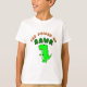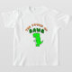 Um fofo t-rex de desenho mostrando seu poder. Design original com texto e desenho.