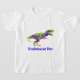 Este dinossauro T. rex colorido traz diversão pré-histórica vibrante e linda para o amante de dinossauros em sua família. Com o modelo adicione seu nome, você tem o presente personalizado perfeito para criar uma nova espécie de tiranossauro, por exemplo, Noah se torna 'Noahsaurus rex' Ilustração moderna de dinossauro em tons de roxo, azul, aqua e amarelo. Arte original da artista Catherine Sweetman.