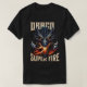The design features a highly detailed, menacing dragon head with horns and glowing orange eyes. Flames and smoke are bursting from its mouth, emphasizing the "SUPER FIRE" tagline below. The overall aesthetic is dark, aggressive, and perfectly suited for heavy metal, fantasy gaming (like D&D), or gothic/streetwear fans who appreciate high-quality creature illustration. The bold typography of "DRAGON" above the creature completes the powerful composition.