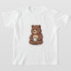 This design features a simple and adorable cartoon brown bear sitting in a relaxed, cross-legged pose. The chubby bear is holding a small white mug with both paws, filled with a hot, dark beverage like coffee or tea, indicated by wavy steam lines rising from the cup. The character has a calm and content expression, with soft brown fur and a lighter tan belly and snout, creating a cozy and warm atmosphere against a plain background.