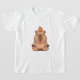 A calm and charming illustration of a serene capybara sitting in a meditative pose, eyes gently closed and expression soft with contentment. A small orange rests perfectly on its head, adding a playful touch of balance and quiet humor. Warm earthy tones, rounded shapes, and subtle blush on the cheeks give the character a cozy, wholesome feel. The clean lines and smooth shading create a soothing visual harmony, blending cuteness and tranquility into a delightful, mindful moment.