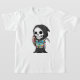 A fun and whimsical illustration of a smiling skeleton dressed in a vibrant tropical shirt, blending spooky charm with laid-back island vibes. The oversized skull with deep black eyes and a wide grin feels friendly rather than frightening, while the colorful Hawaiian shirt bursts with flowers, palm trees, and beach scenery. In one hand, the character enjoys a dripping multi-scoop ice cream, adding a sweet, humorous contrast to the classic grim reaper look. The dark hood, curved scythe, and bright colors create a bold visual balance that feels quirky, cheerful, and full of personality.