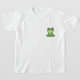 Embrace a moment of tranquility with this charming artwork featuring a sweet green frog enjoying a warm drink. The design showcases a wide-eyed, blushing amphibian sitting cross-legged on a large green lily pad. Clutched in its hands is a simple white mug emitting soft swirls of steam, suggesting a fresh cup of coffee or tea. With its spotted skin, friendly smile, and peaceful posture, this kawaii-style illustration perfectly captures the essence of a cozy, relaxing morning in nature.