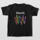 Esta é uma camiseta divertida para um garoto indo para o 4º ano. Seu garotinho simplesmente adorará vestir essa camiseta colorida no seu primeiro dia do 4º ano. Para tornar a camiseta ainda mais especial, ela pode ser personalizada com o nome do seu filho na frente. O design consiste em sete lápis coloridos em ângulos diferentes próximos um do outro e as palavras "quarto grau" com cada letra em diferentes cores, no meio dos lápis.